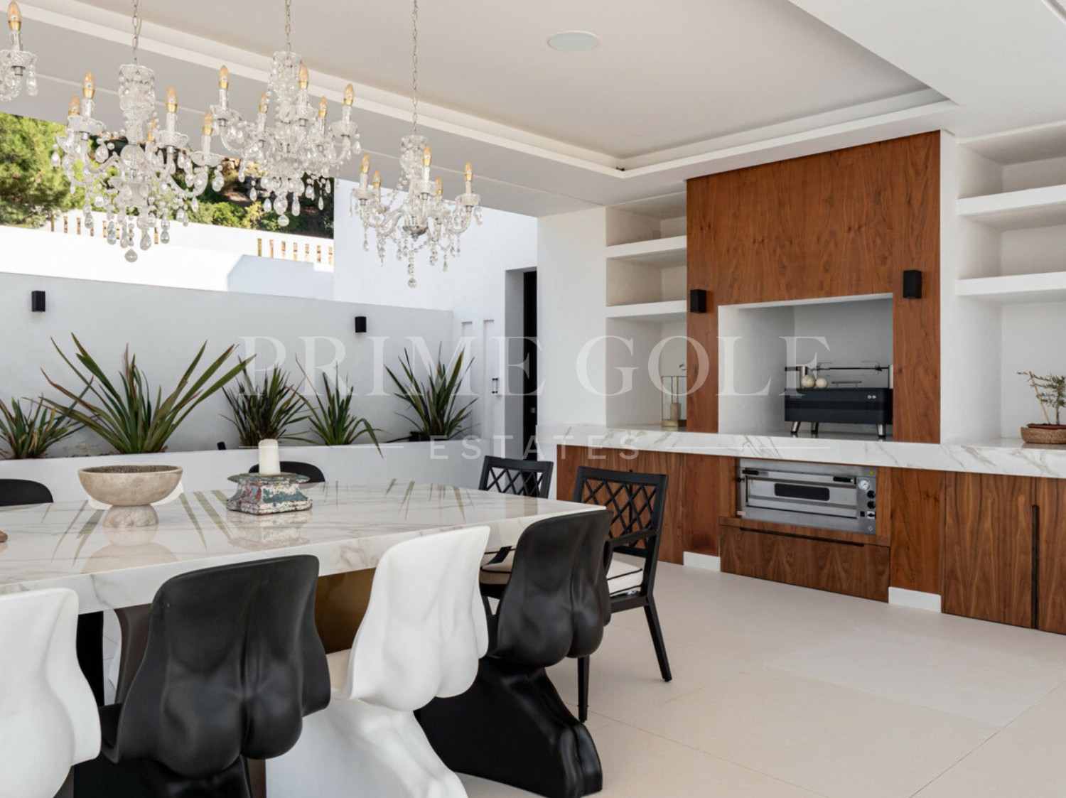 This contemporary luxury villa for sale in Marbella Club Resort has been recently built to the highest standards. This villa offers a perfect combination between a ultra-modern property and peaceful surroundings. The front-line golf situation provides outstanding views and breathtaking surroundings. Marbella Club Resort is a well-established gated community known for its high-level security service and its prime location, close to Puerto Banús and Marbella by car, but away from the bustle of the city.