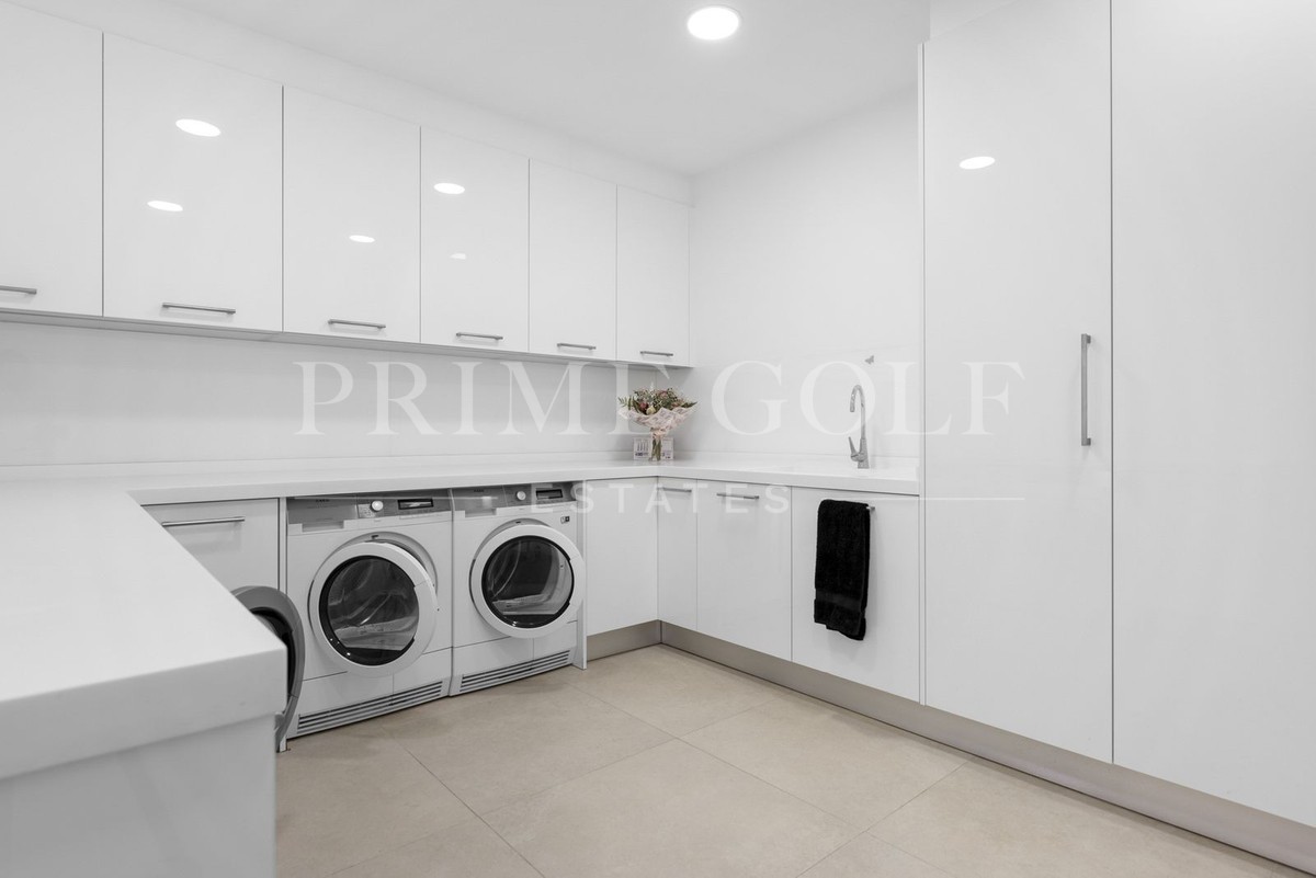 Upon entering the property, you'll be captivated by the villa's contemporary charm, featuring an open-plan layout that integrates each living space. Featuring high ceilings and expansive floor-to-ceiling windows, natural light floods the interiors, creating a bright and inviting atmosphere. The avant-garde interior design exudes a sleek, modern ambience, delivering an understated sophistication that leaves a lasting impression.